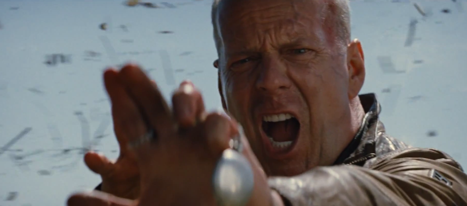 Time travel here also appears to have the main characters – including Emily Blunt – grabbing anti-gravity powers for one reason or another too. Check out Blunt's character pushing around a cigarette lighter in the trailer above. Also notice that this day marks the start of a viral campaign which also reveals the timeline in the movie. In the trailer, we hear that "time travel has not yet been invented, but thirty years from now it will have been." The viral campaign gives us the year 2044, therefor we'll be watching Looper in present day 2012. Fun stuff!