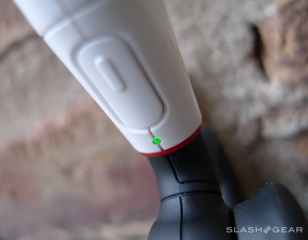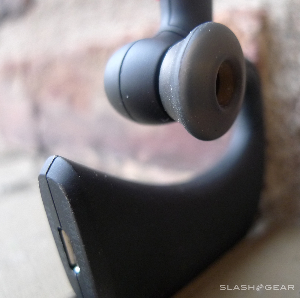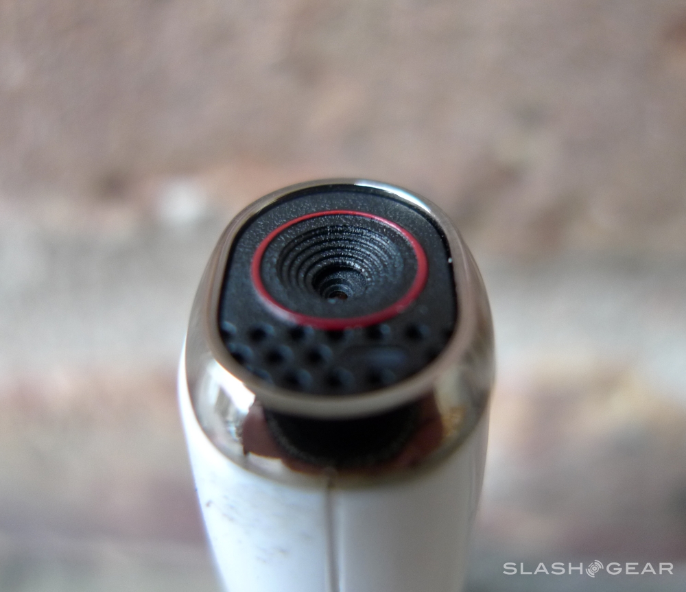 That said, it's a completely lovely looking piece of industrial design, and I do consider myself to be a bit better than a novice at judging that. The placement of the buttons, the fact that there's a total of 4 buttons, two lights, one earpiece, one miniUSB, and one camera all on this little J, that's amazing. It all seems as one, as it should. White and charcoal coloring with accents of red – that's also tops.