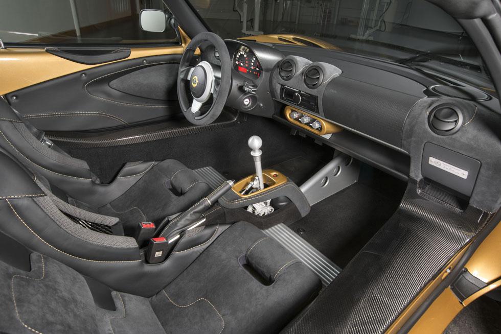 Almost all of the lightweight Elise Cup options are standard on the Cup 260. Those touches include carbon fiber sill covers, roll hoop cover, front access panel, and engine cover. The car also uses two-piece brake rotors. Lotus also uses two-way adjustable Nitron dampers for suspension, the first time these have been used on an Elise.