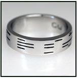 The Binary rings have 5 sets of parallel tracks going around the band. Each track represents a binary digit, with 1's being engraved, and 0's are blank. You can fit up to 20 characters on each ring.