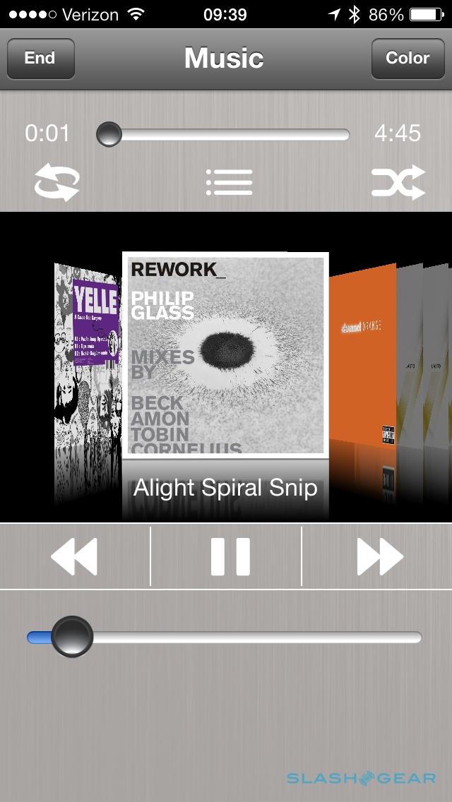 A row of hexagonal icons underneath jump into the app's different speciality modes, which range from the basic – turning the lights on and off based on the clock – through to flashing them with a selectable pattern when a call comes in, and then party mode, where the bulbs flicker with different colors and patterns to mimic a glitter-ball. There's also a music mode, which plays tracks saved on the iPhone and pulses the bulb in time with the music and singing; however, you can't use it with streaming services, like Spotify or iTunes Radio, and since the Bluetooth is already occupied controlling the bulb, you can't play the music through nearby Bluetooth speakers.