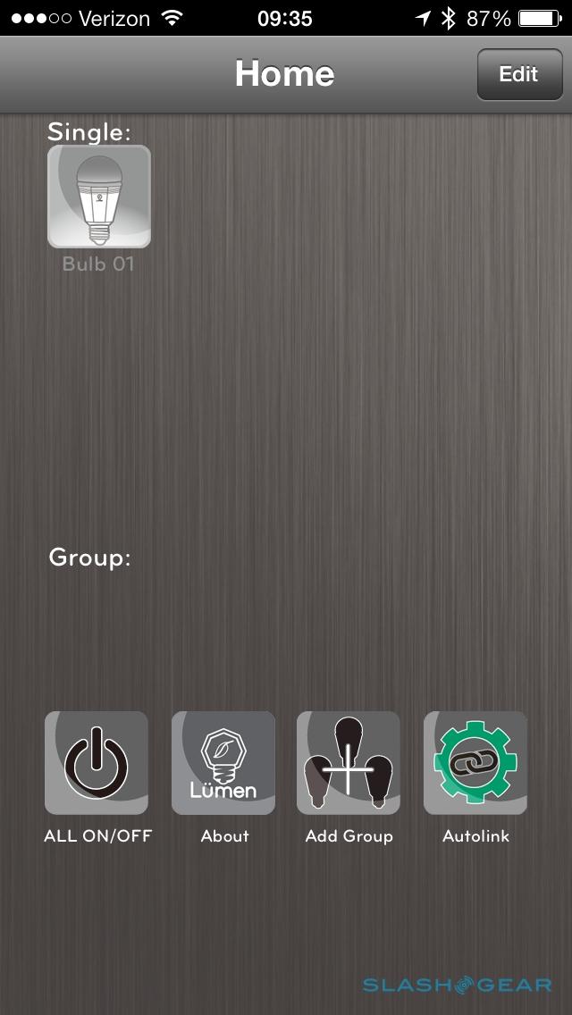If you have more than one TL800 bulb, you can group them together and control them in unison; we only had a single bulb for review, so were unable to try this feature. Each bulb can only be controlled by one device as well: when the bulb was linked to our iPhone, we couldn't then control it from the Nexus 5. Even closing the Lumen app didn't "free up" control of the bulb sometimes, with the only solution being power-cycling the bulb, toggling Bluetooth on and off, and then restarting the app, at which point we could finally take command on the second device. In contrast, multiple installations of the hue app can control all of the various bulbs simultaneously.
