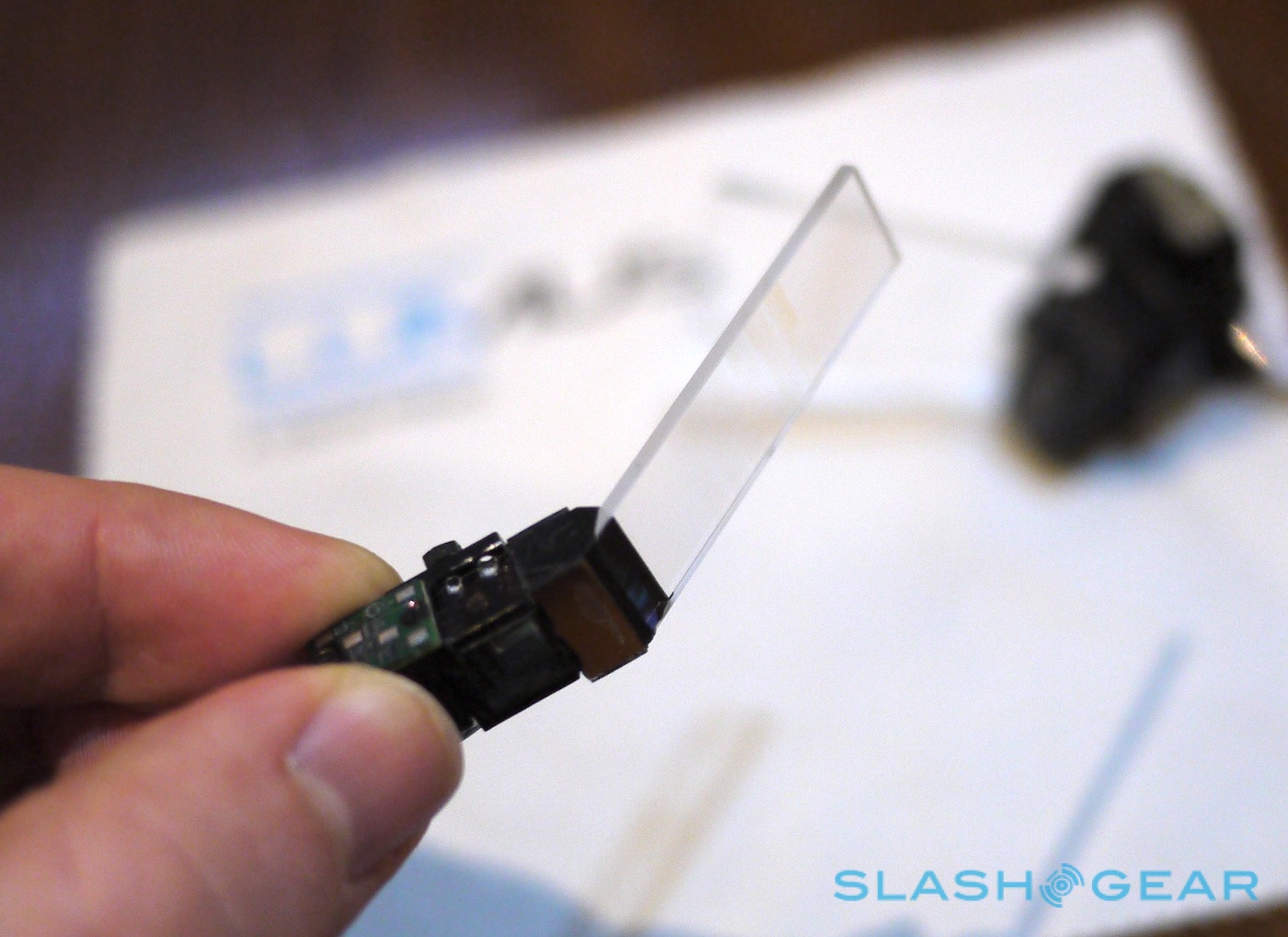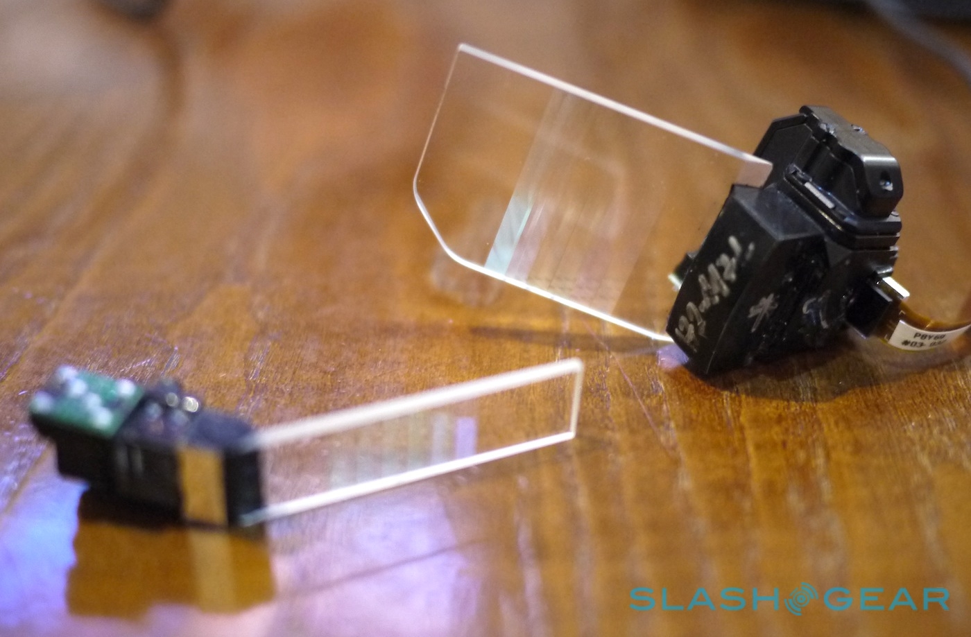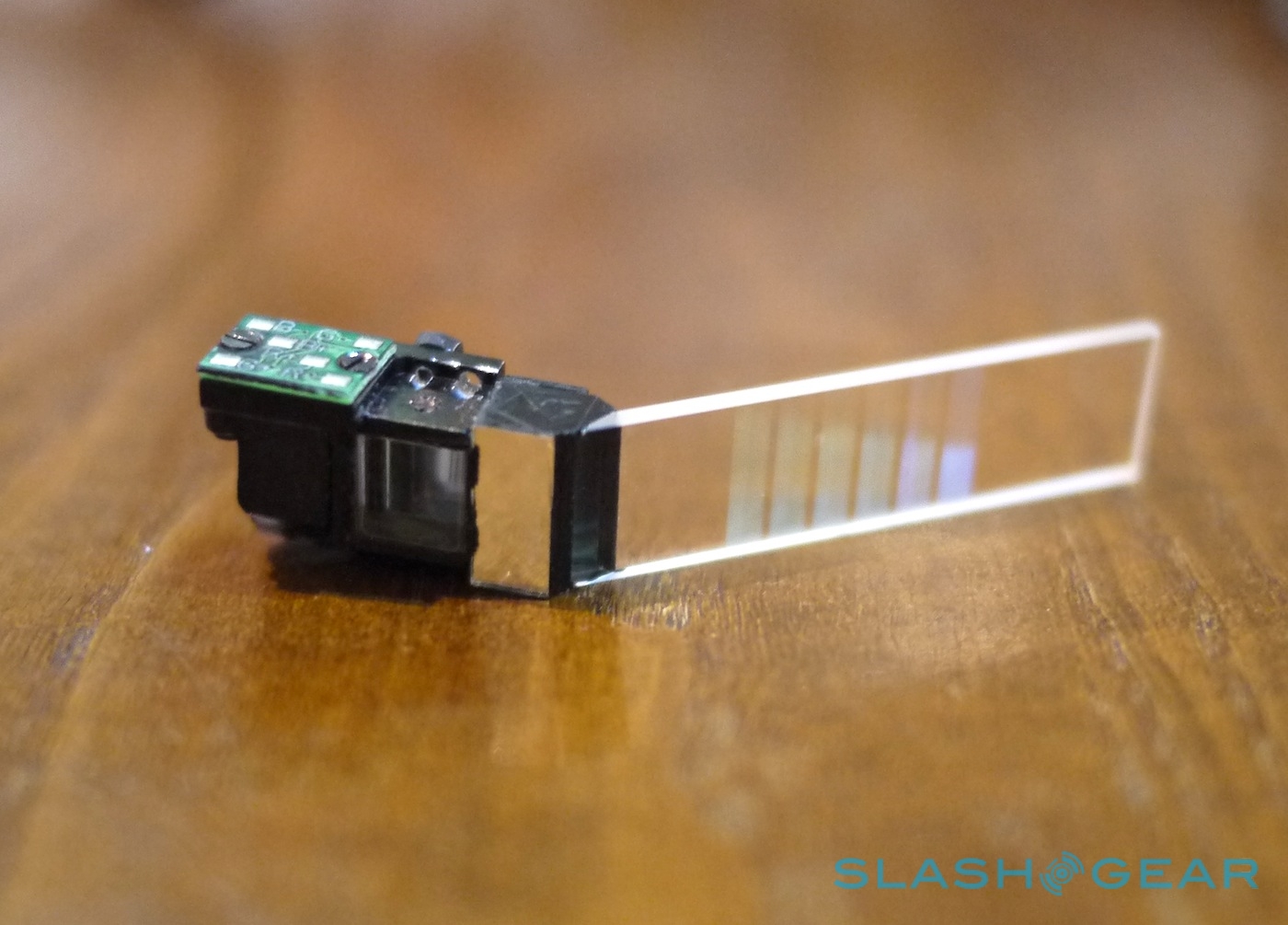 Lumus announced the OE-31 optical engine just before Mobile World Congress last month, but public displays haven't been forthcoming yet. Like the DK-32, the wearable screen consists of a tiny projector – which would be integrated into the hinge section of your glasses – and a transparent plastic slice through which the picture shines. Built into the plastic is a series of lenses that reflect sections of the projection into the user's eye.