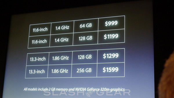 The new model features 2GB of RAM, and you can have up to 128GB of storage (there's a 64GB option as well). You'll find a 1.4GHz Core 2 Duo under the hood, so thing should tick along at a nice pace. Price wise, you'll be able to get your hand on the 11.6-inch version with 64GB of storage for $999. The larger storage will set you back $1,199. They are available today.