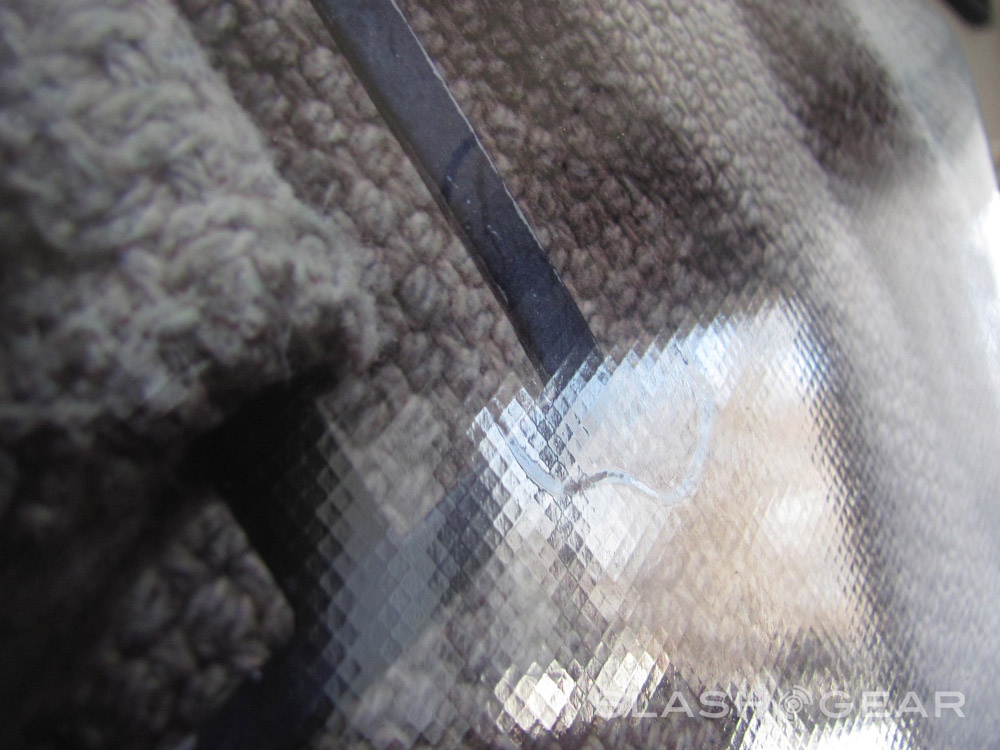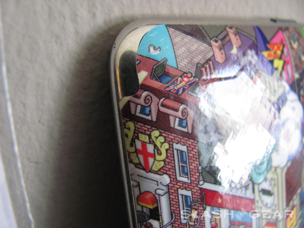 The printing on this skin is marvelous. You'll hear me say the same thing about the iPod Touch skin because it's a design by people who know how detailed the printers can be here, but I had no idea, and thustly submitted a high-res photograph to test the capability of the GelaSkins colors and sharpness. Completely top notch. I've never seen something printed so perfectly on a non-paper surface. I don't know how they've done it, but they've done it extremely well. When placed next to the backpack from whens the photograph came, supposing it's in the same light, they look basically identical. A little bit different in size, obviously, but identical nonetheless.