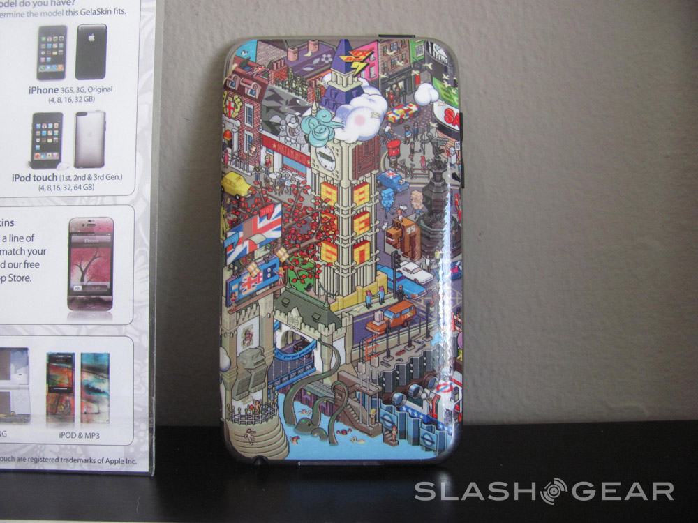 So we were contacted by no less than GelaSkins themselves to see if we'd like to take a look at their brand new MacBook Air protective skins. What did we say? Of COURSE we'd like to take a peek. So they did indeed let us take a peek, and since I just happen to have had a brand new MacBook Air 11" right here to go with my ancient iPod Touch 2nd gen, I decided to grab a skin for both. For the iPod Touch 2nd gen I decided to go with a massively complex London illustration by my favorite group of pixel illustrators in the world: eboy! Then for the MacBook Air 11-inch, I decided to take the DIY route and have them print my own design.