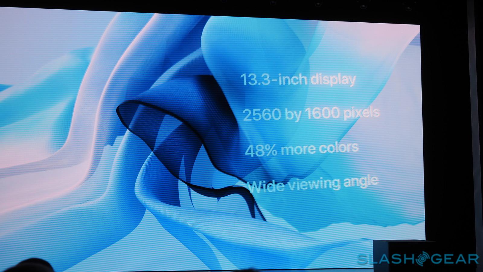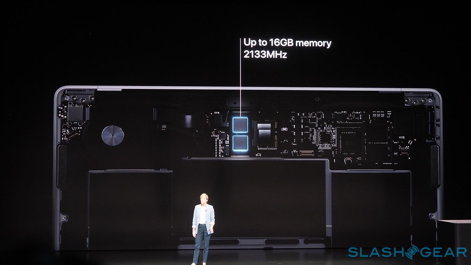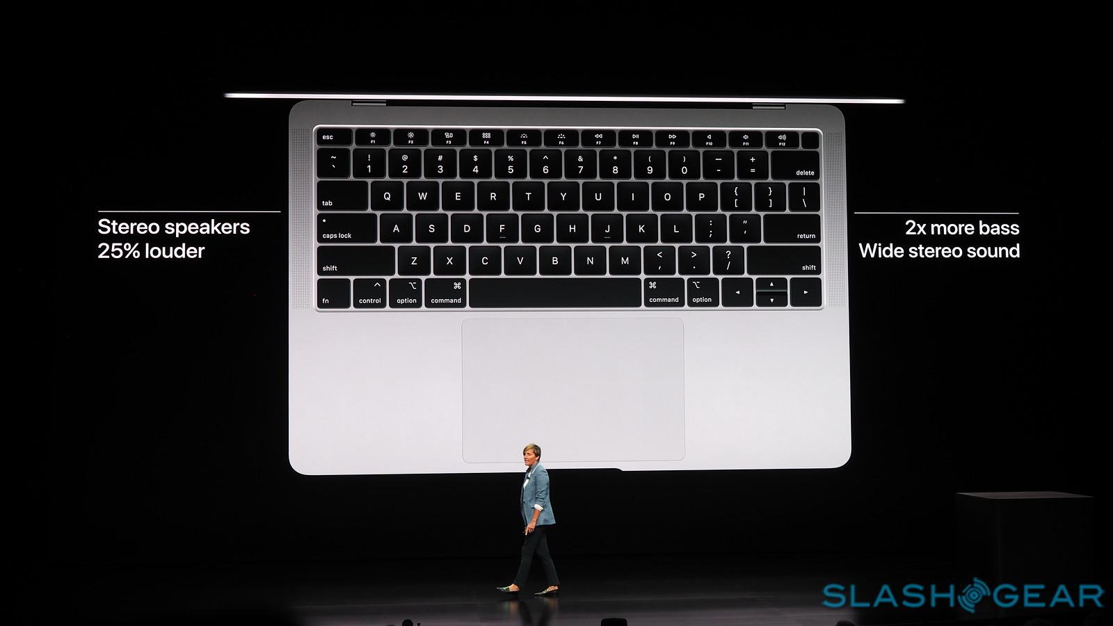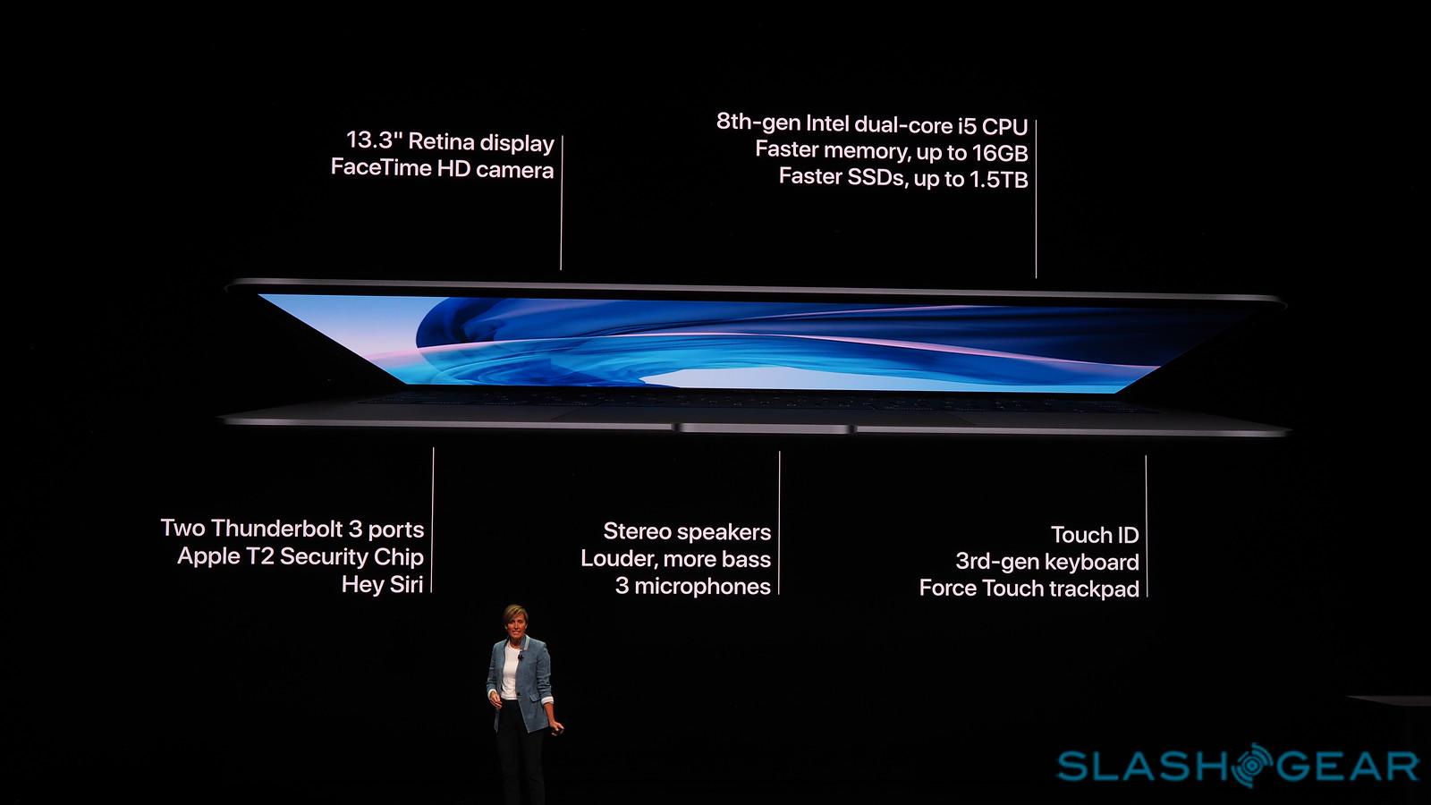 The USB-C ports on this device are also Thunderbolt 3, and as Lagrove said, "the most versatile port ever." Under the hood you'll find 8th Gen Intel dual-core CPU with integrated graphics, up to 16GB of memory, up to 1.5TB SSD. Apple suggested too that this device will have 13 hours of iTunes movie playback – which is a very weird way to say how much battery life it's packing.