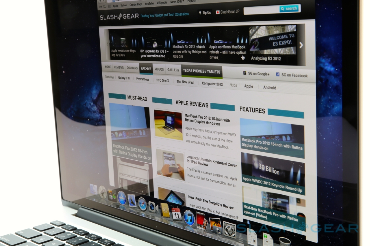 And that display is definitely something worth having. The new Retina Display on the MacBook Pro is to the new iPad's screen as the third-gen tablet was to the iPhone 4S: a stunning step up in what we've come to expect from our computing tech. It sounds crazy, but the panel just looks more "real", more authentic somehow than the typical Pro resolution, with the absence of individually discernible pixels sanding away at the impression that you're looking at a computer screen.