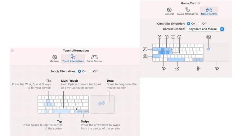 MacRumors reports on new Touch Alternatives and Game Control settings available when running iOS and iPadOS games on M1 Macs. Game Control allows users to assign controller buttons to keyboard keys and trackpad actions while Touch Alternatives map touch gestures like swiping or even phone tilt to keyboards and touchpads as well.