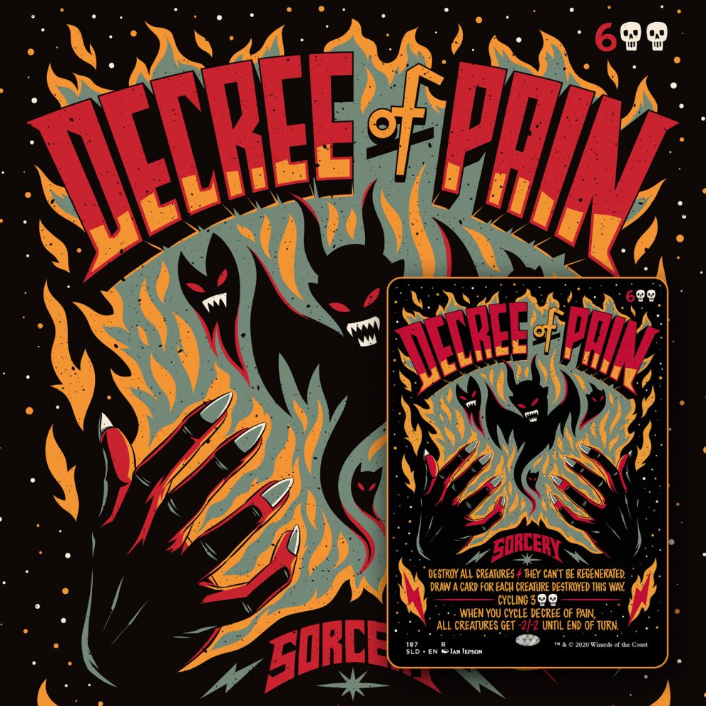 With this set of cards, the user gets Degree of Pain, Gamble, Nature's Lord, Preordain, and Wrath of God, each hand-drawn, each in what's likely their most extravagant visual form yet produced. The release date for this set is August 25th, 2021, and the sale date is April 26th, 2021.