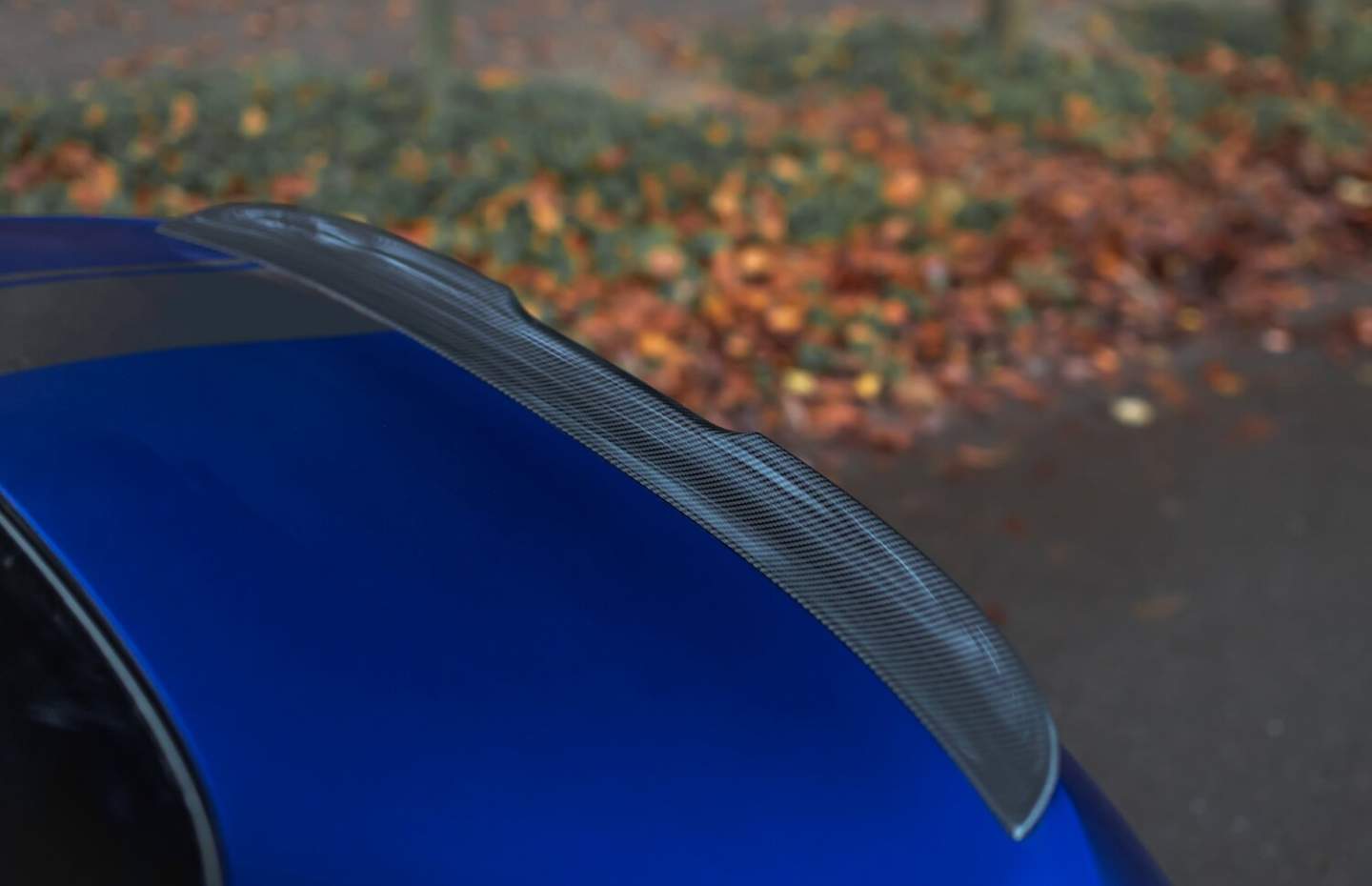 As expected from a Manhart creation, the MH8 800 features a carbon-rich exterior, and you'll find it in the hood cutouts, front spoiler, side skirts, and rear diffuser. This particular example is wearing matte blue paint (with racing stripes) and has color-coded 21-inch Manhart Spider wheels wrapped in wider low-profile performance tires. In addition, the lowered stance is courtesy of Manhart height-adjustable springs by KW suspensions.