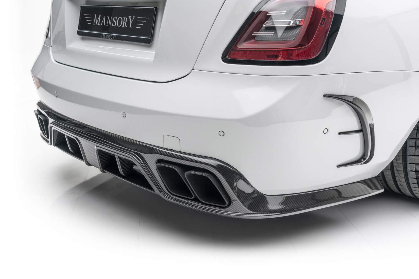 As expected from Mansory, the complete vehicle conversion consists of a plethora of bare carbon fiber components, each made and baked in-house at Mansory's autoclaves. At the front, it has a new front lip with side flaps and a gigantic carbon fiber hood with visible carbon structures. The car also gets redesigned LED driving lights and an illuminated grille in the client's color of choice.