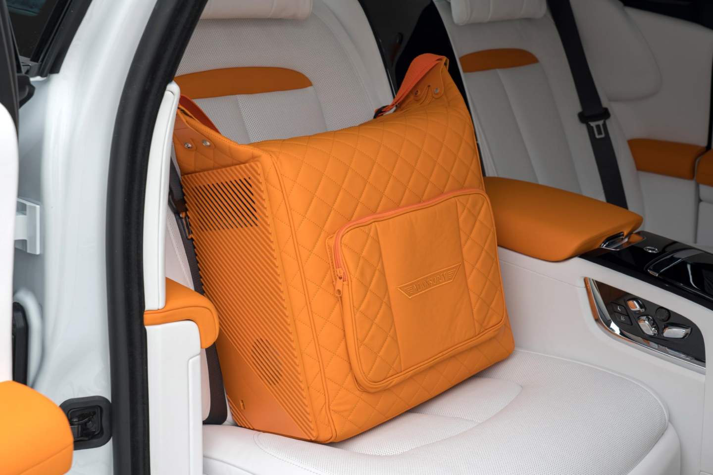 In addition, the dashboard, seats, and door panels have additional LED lighting to create a festive yet soothing atmosphere. Also standard is a leather-carbon sports steering wheel with carbon inlays and a bespoke leather Mansory "cool bag" offering up to 14 liters of capacity, more than enough to store your favorite brewsky and champagne.