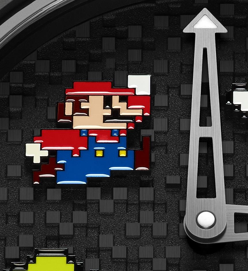 The timepiece from the luxury watchmaker is to celebrate the 30th anniversary of Nintendo's most iconic game character. The mechanical watch features pixellated graphics of Mario, a mushroom, and more, all with a 3D effect thanks to the enameled figures being slightly raised from the background.