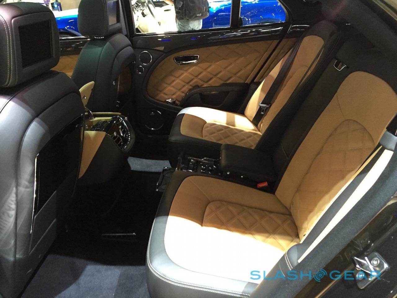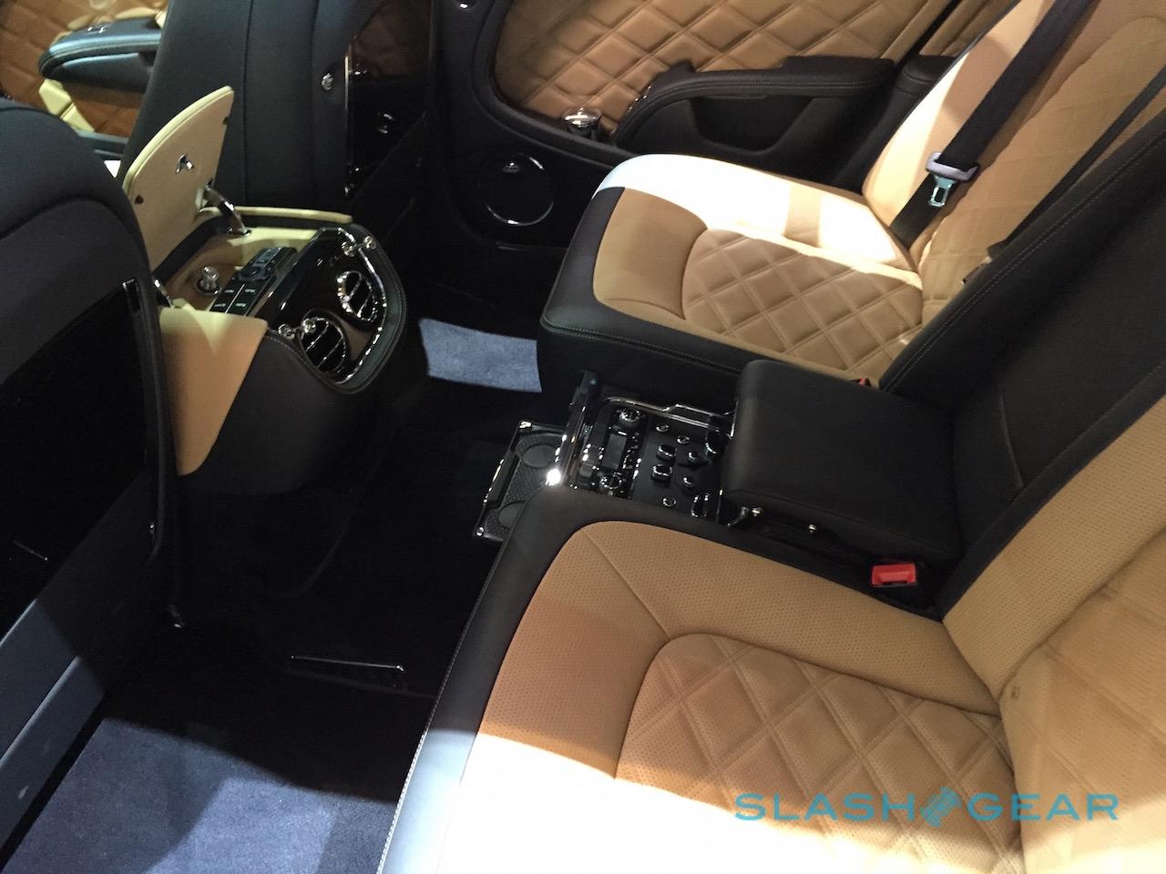 However, you also get a 60GB hard-drive for storing music and movies, along with integrated WiFi and a 2,200 watt Naim for Bentley audio system. Twin 8-inch screens are in the back and, while the Mercedes-Maybach has its airline-style aluminum tables that pull out of the armrest, the Mulsanne Speed one-ups it there, too.