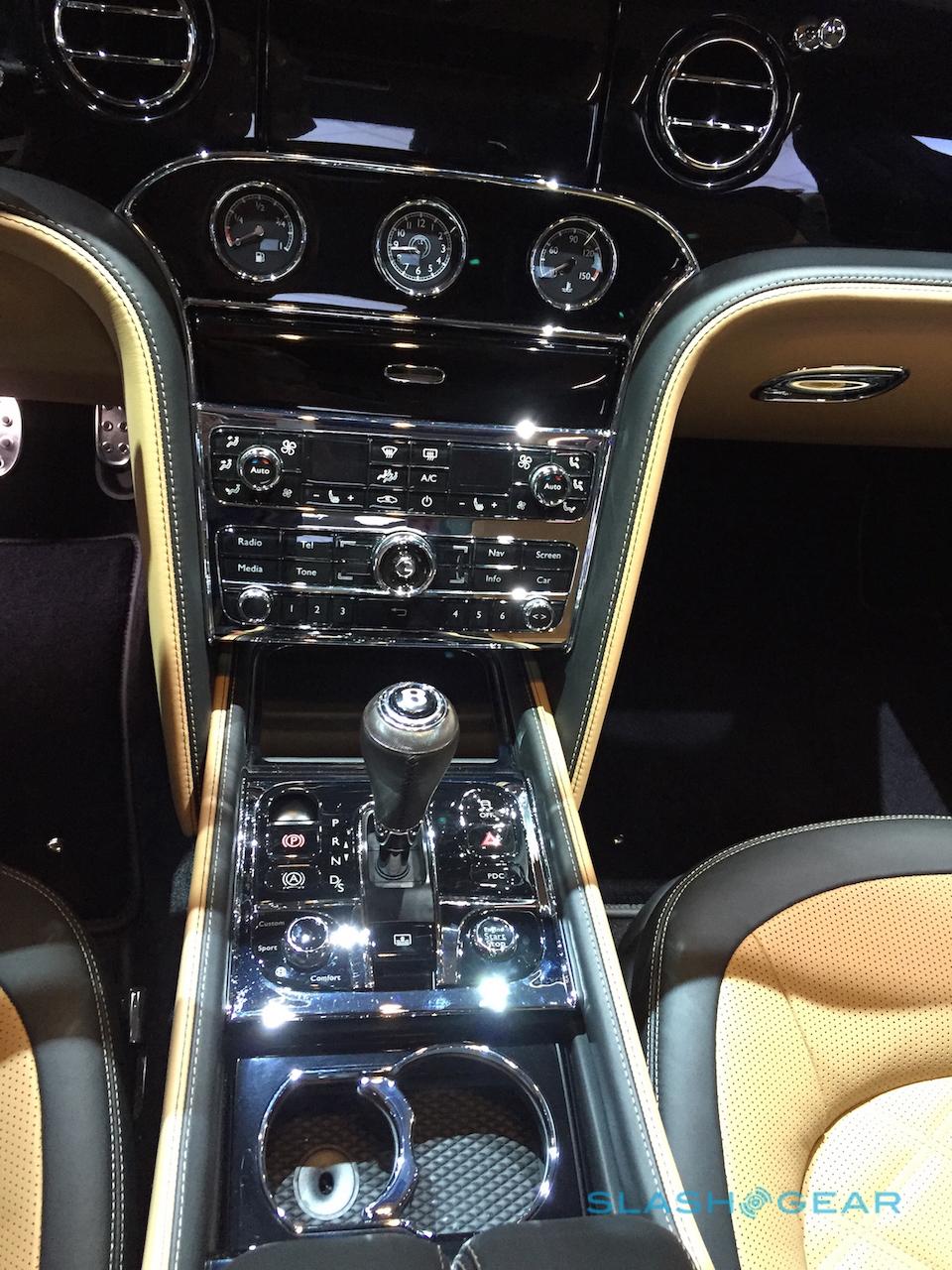 It's inside that Mulsanne Speed starts to show up the Maybach, though. Of course there's leather – a choice of 24 different hide colors, in fact, with diamond quilting on the door panels and seats – and aluminum for the gear lever, "organ stop" vent controls, and sports pedals.