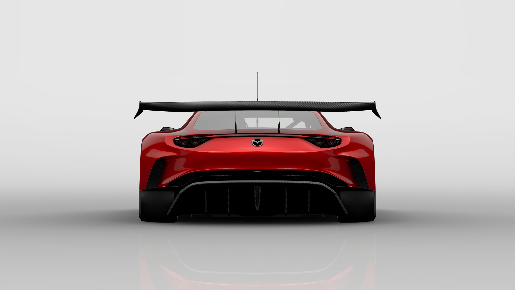 Developed in conjunction with Polyphony Digital Inc., the RX-Vision GT3 for Gran Turismo Sport is every inch a racing car. It has an oversized GT3-style rear spoiler and a front splitter inspired by the Mazda RT-24P IMSA prototype racer. And since we're talking about a proper race car, the awesome bodywork features exaggerated fender flares and cooling vents on the hood.