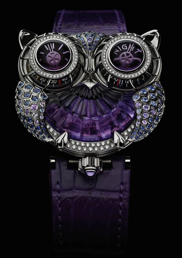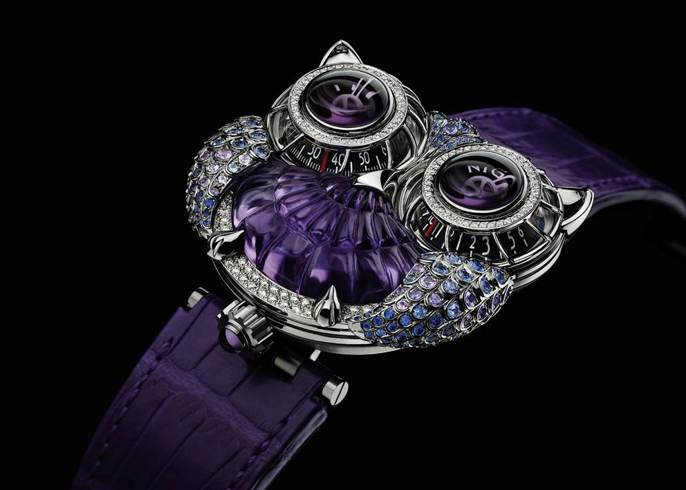 We're used to MB&F putting together bizarre watches, but they may have just tipped over the edge with this latest design. The MB&F JwlryMachine takes the already unusual HM3 Frog as its starting point and then dresses it up as a particularly camp looking owl.