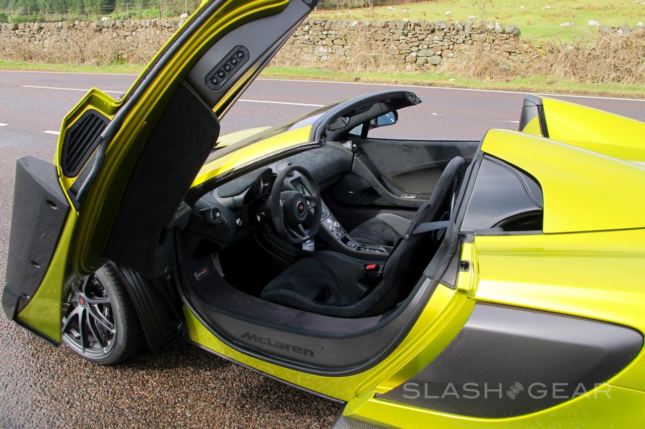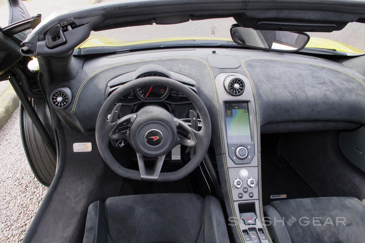 In this pleasingly remote stretch of earth, McLaren's latest punctures the atmosphere with its 666 horsepower—coincidence? we think not—and 516 lb.ft.-rated 3.8-liter twin-turbo mill. Power is seemingly always at the ready, as Britain's newest torpedoes to 60 mph in a blurry 2.9 seconds (Two-Point-Nine, let that sink in a moment). McLaren is actually more impressed with the 0-200 km (124 mph) time of just 8.1 seconds, as well they should be; A Porsche 918—at more than twice the price—can only do it a second faster. Top speed? Two-oh-three.