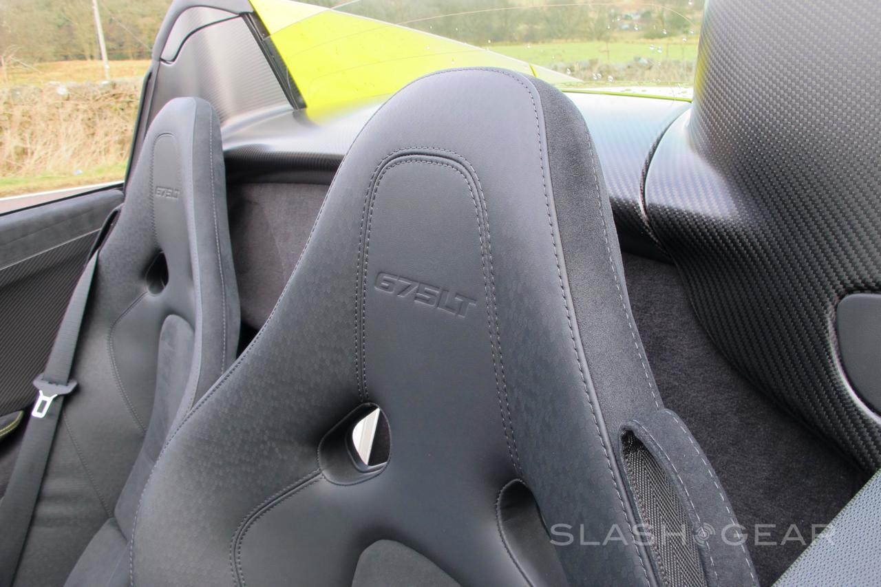 I'm almost surprised McLaren bathed the LT's interior in Alcantara, and not some newer, space-tech lightweight material. And while the Alcantara and bare carbon fiber are luxuries, this car doesn't have all of the drama of the competition. Everything is clean, purposeful, and streamlined. The drama is reserved for the road (and those magnificent doors).