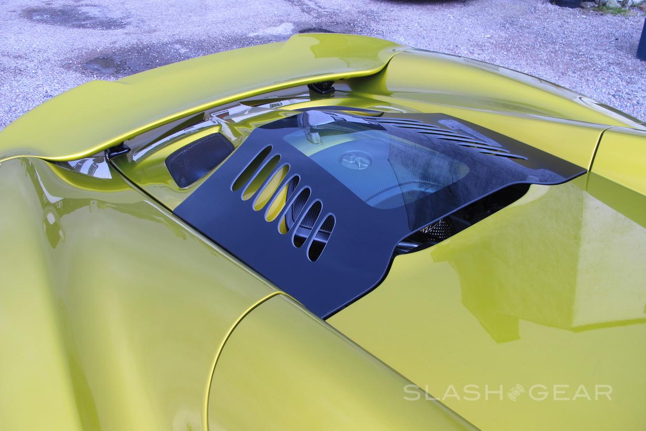 Immediately the massive front air intakes and splitter begin earning their keep, swallowing up cold, damp Scottish air with zeal. At some point I hear a little whirring coming from the back, the Airbrake has surfaced to help keep the giant wheels planted on the ground, and me closer to the earth. The Longtail Airbrake is actually 50 percent larger than on other Super Series cars, but weighs less. Seems everywhere, everything weighs less.