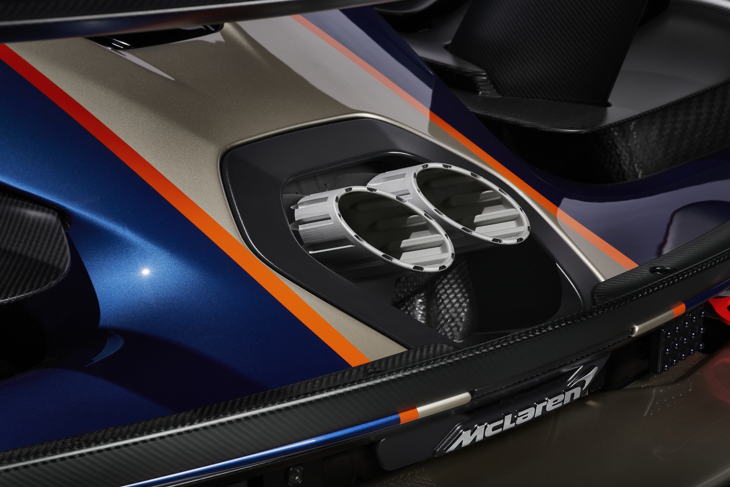 According to McLaren, this version took the longest to paint. The original livery was created by renowned artist Cesar Baldacini and was inspired by Poulin's collection of racing trophies.