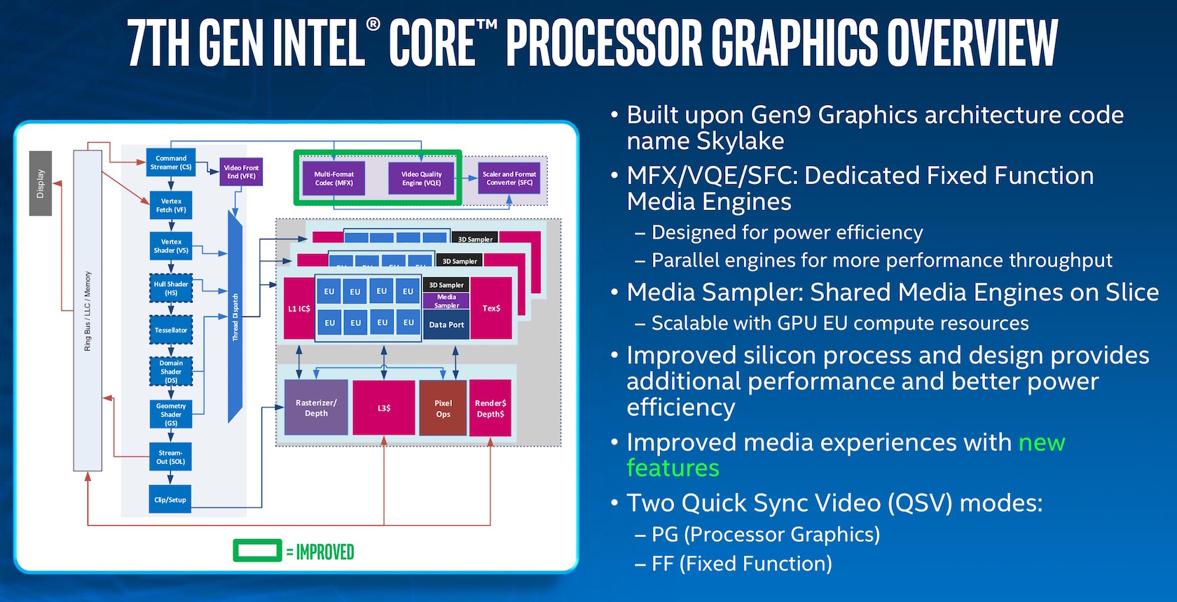 On paper, you might question exactly what has changed. Like the 6th Gen chips they're built on 14nm processes, and indeed the 7th Generation uses the same Skylake architecture, albeit "with enhancements," Intel says.
