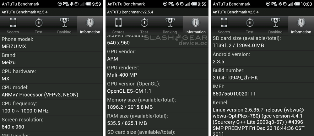 This device runs on Android 2.3.5 Gingerbread with Meizu's custom user interface "Flyme" running on top. You'll get a good look at how this version of Android works in comparison to both Android 4.0 Ice Cream Sandwich on the Samsung Galaxy Nexus and iOS 5.0 on the iPhone 4S in this hands-on video: