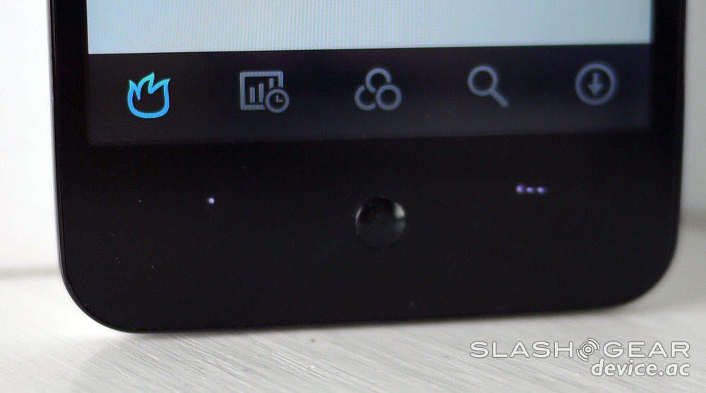 The white back and black front of the device give it a lovely two-tone look that's rare in the market today, with a set of light-up arrangement-switching lights surrounding the center Home button – which sticks outward instead of the usual inward we see with such smartphones as the iPhone. The Home button does just that, brings you back to your main home screen from whatever app you're in, and is also able to wake the device up. Because the button is out rather than in, it poses the risk of you hitting it often when you do no intend to – more than likely we're seeing reduced battery time because it's on in our pocket so very often unintentionally.
