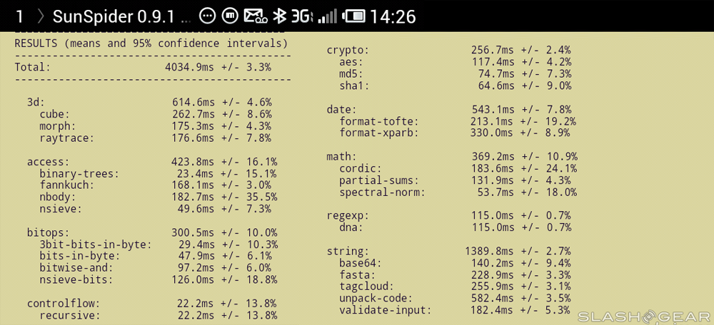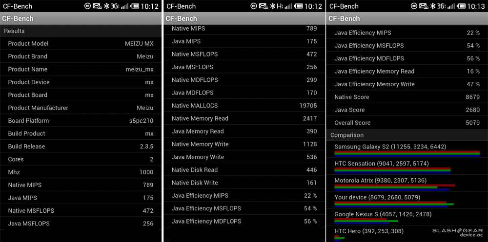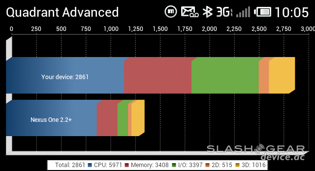 Also feel free to take a glance at a set of benchmark tests done on the phone here, and note that this is the early-release developer/reviewers edition of the device, it appearing in forums across the web as having benchmarks just about 85% as good as the final release of the device. This device is, again, already available in China now. SunSpider is run on the stock web browser with T-Mobile 3G: