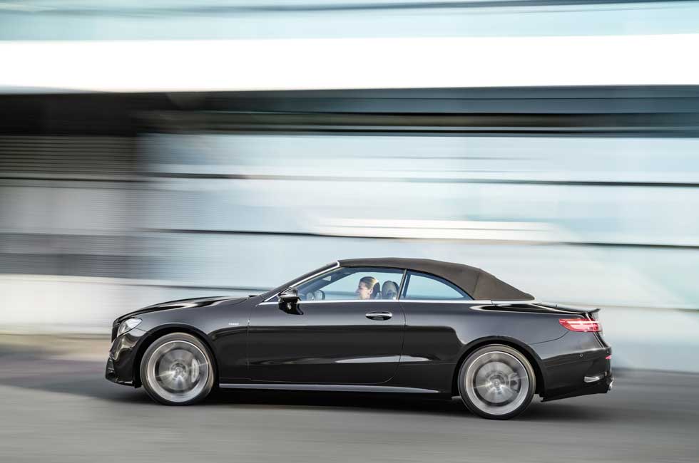 The AMG 53 CLS will hit 100 km/h in 4.5 seconds with the E-Series coupe slightly faster at 4.4-seconds. the E-Series cabrio needs 4.5 seconds to reach the same speed. Top speed is limited to 250 km/h for all models. Pricing is unannounced.