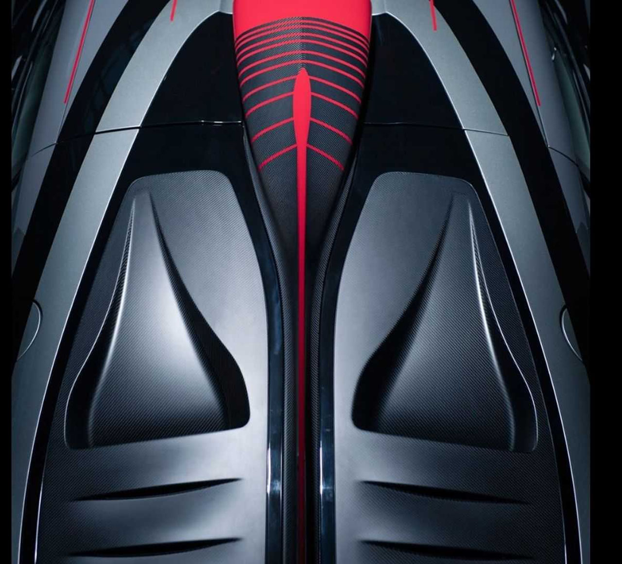 But we can tell in the images is that the car is festooned with aerodynamic tidbits to help the car produce downforce and handle on the street and the track. We particularly like the tall shark fin running down its back that reminds us of prototype racing cars. We also note the deeply louvered tops of the front fenders meant to let high-pressure air out of the wheel wells. Those louvers also stick up quite a bit above the fender's surface, presumably helping to add downforce directly above the tires.