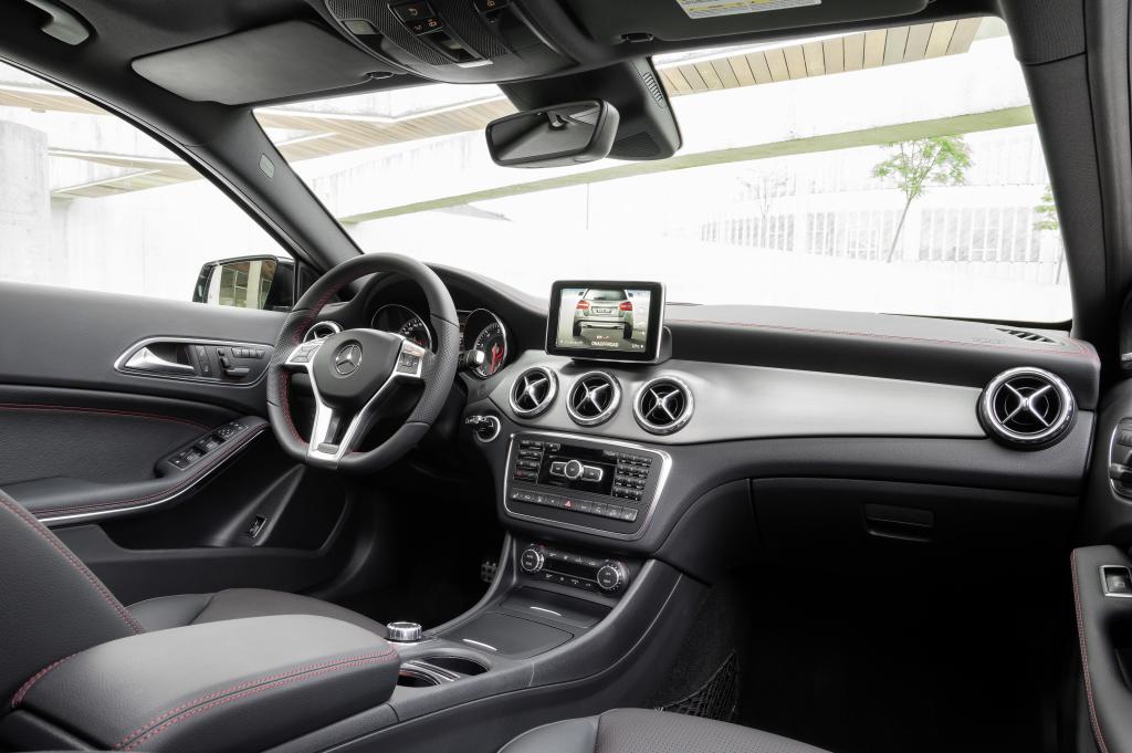 On the outside, there are elements of the larger SUV models from Mercedes' range – the GLK, ML, GL, and G – along with the swoopy CLA, with the wheel arches boosted and sharp crease-lines across the body. The GLA also gets narrower glass and a higher waistline, with Mercedes apparently looking to the teeth of an excavator for the notches in the side panels.