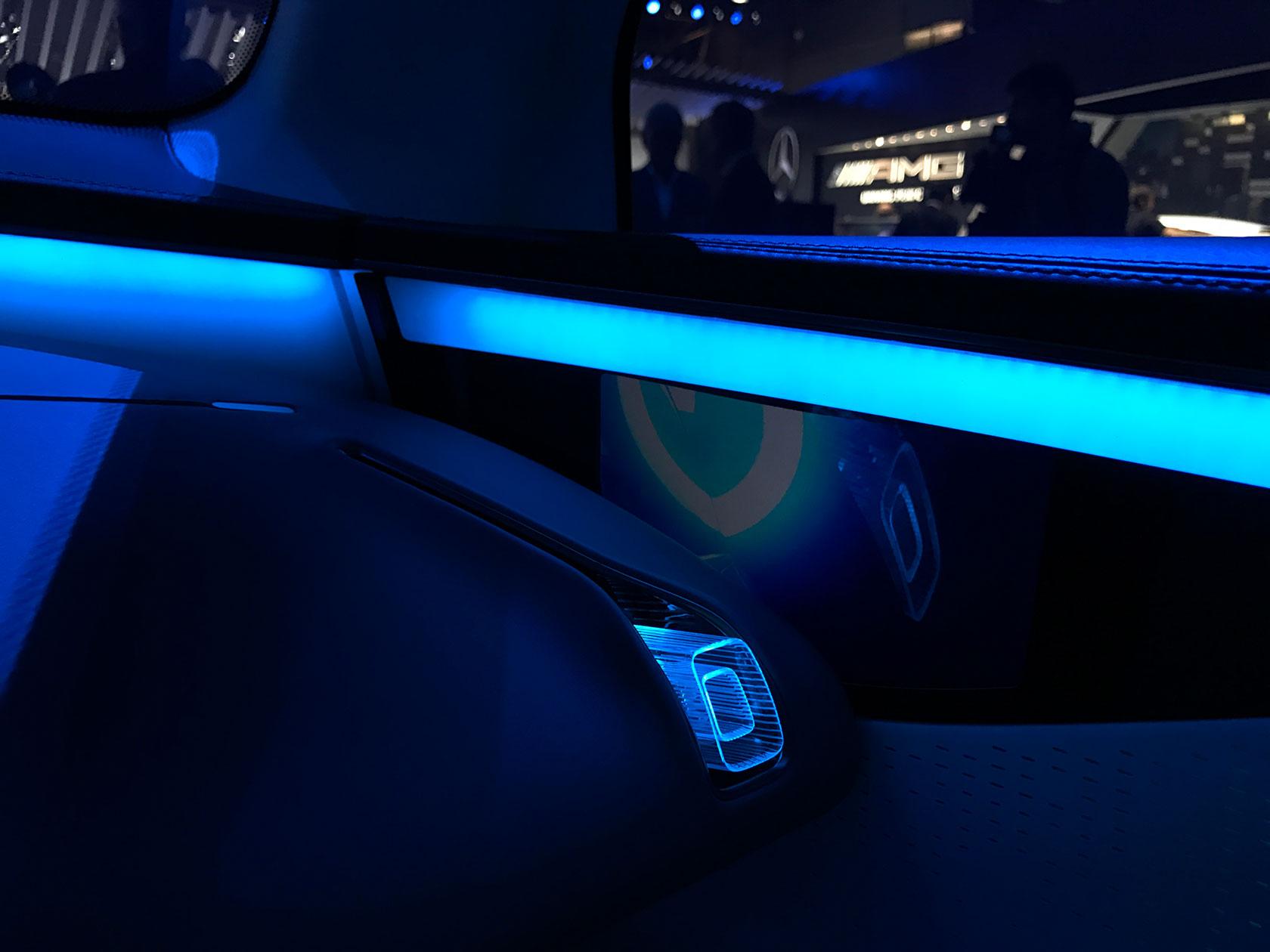 Off-white meets a dark gray and a subdued rose gold to mix with a bright electric blue set of lights. It's not the combination we thought we'd be finding appealing, but Mercedes-Benz sure seems to know how to make it work, and make it look fantastic.