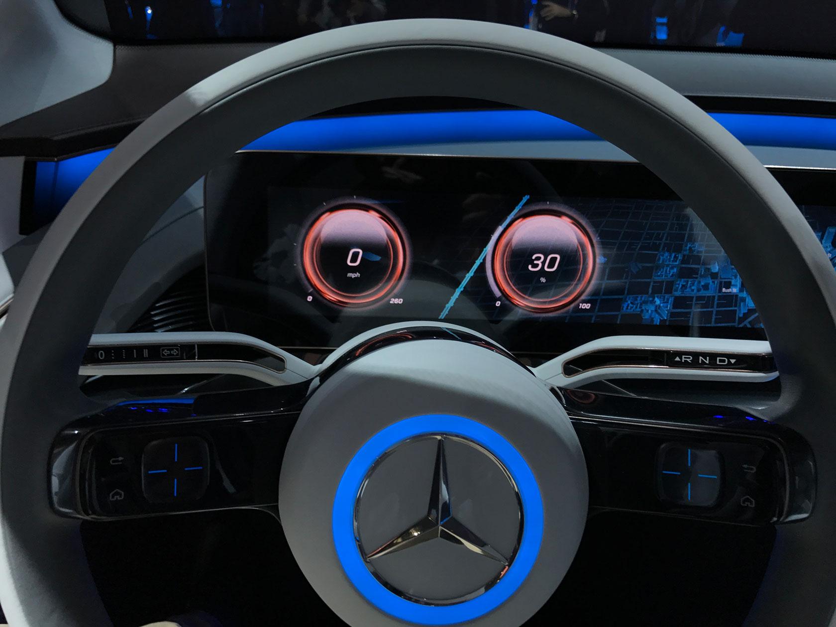 This week at the Paris Auto Show, we got the opportunity to get up close and personal with the future of Mercedes-Benz' newest in electric vehicle technology. The company has just introduced their brand new EQ system, as we've outlined earlier this week, and now we're being given a tour of the interior of the first concept vehicle to embody this system at its core. This is the Generation EQ, a concept vehicle that's super futuristic in both aesthetics and interface.