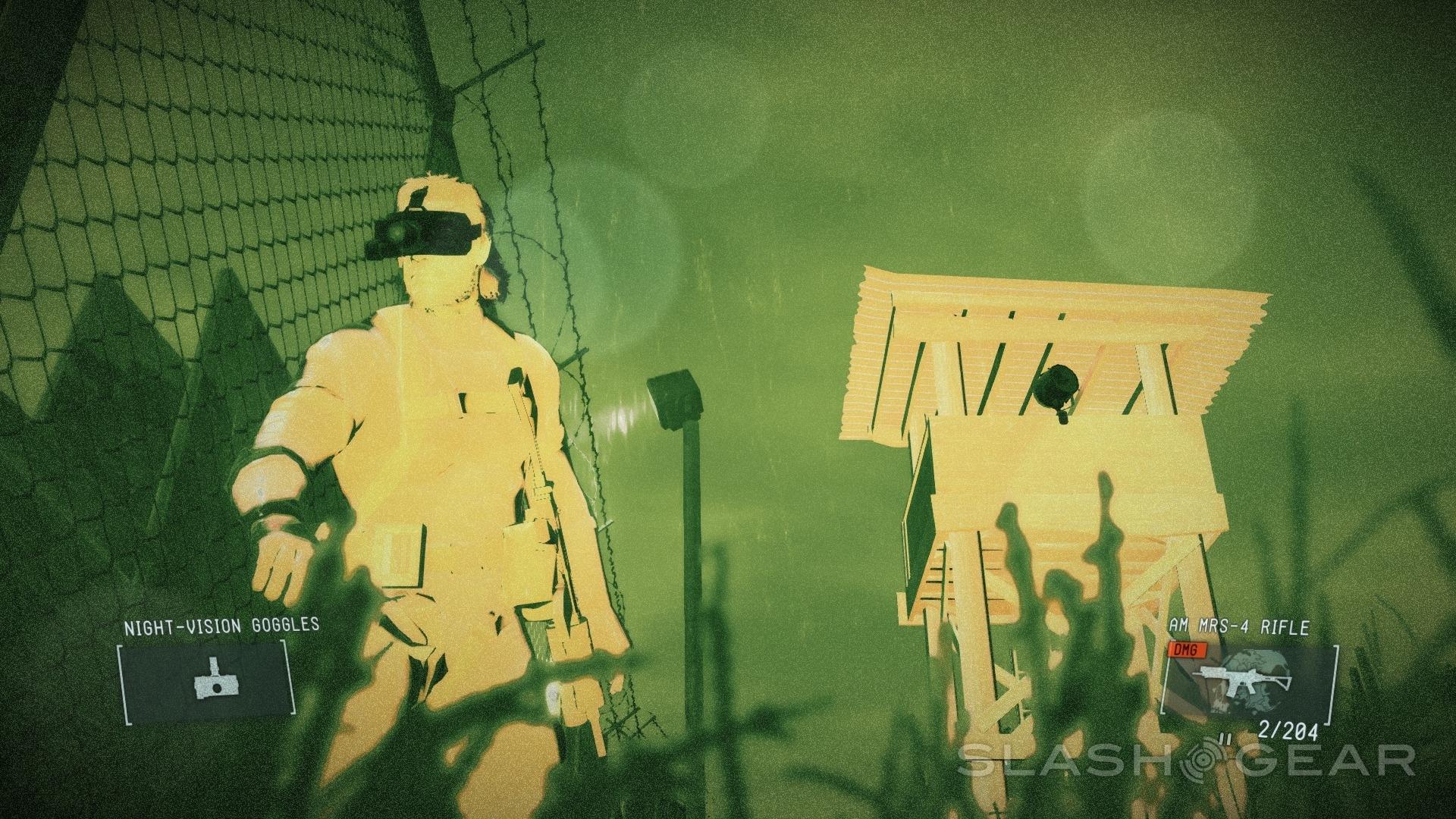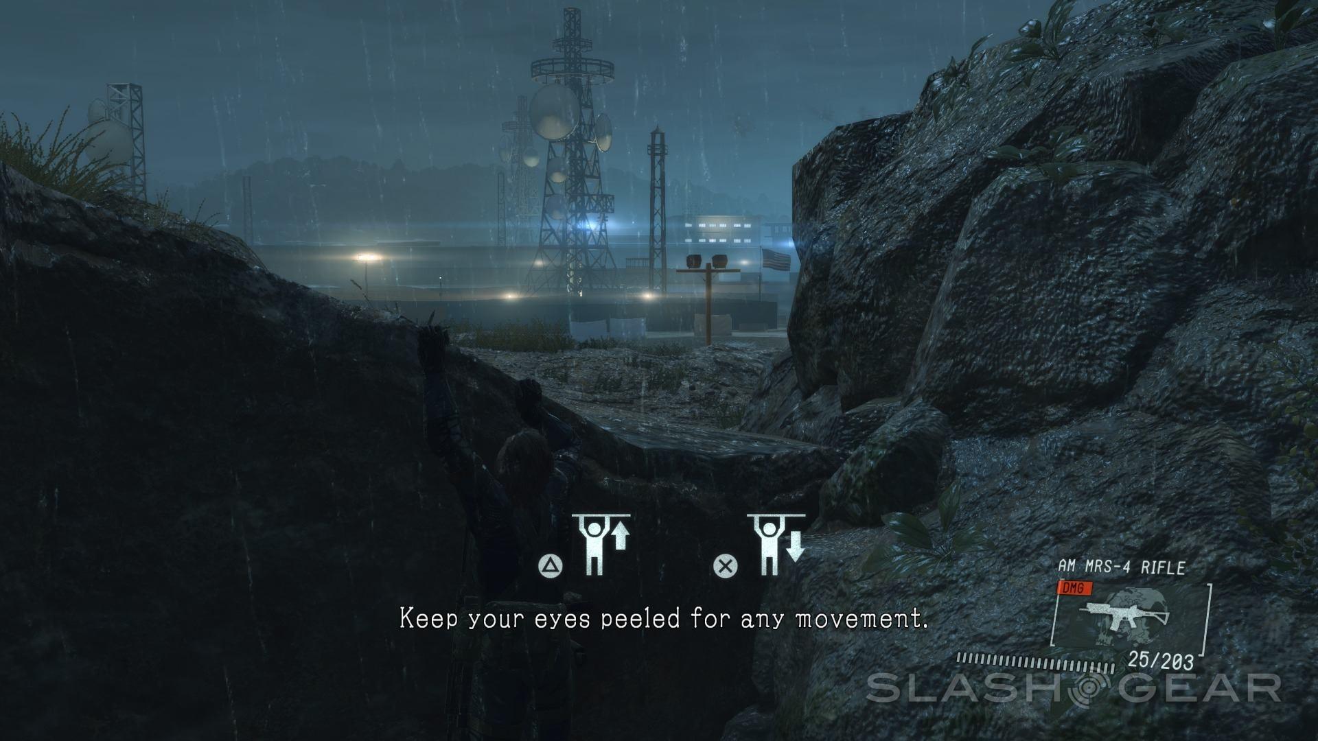 The version of Metal Gear Solid V: Ground Zeroes we've looked at first is the PlayStation 4 iteration. All screenshots with the SlashGear logo above and below, as well as SlashGear-tagged video spots were captured on the PlayStation 4. Any additional insights on differences in platforms are and will continue to be noted in future updates.