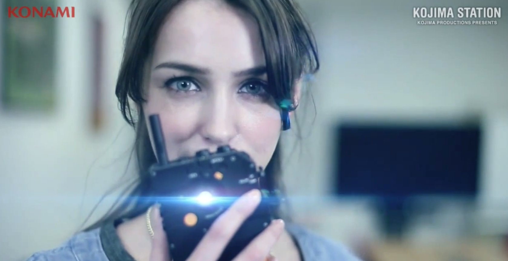 Above you'll see a vision of the iDROID in the game, while below you'll see it in real life. Appearing below during an episode of Kojima Station, this device is actually an iPhone cover in the real world, complete with bright blue LED light so that you can pretend to blast your holographic user interface up in all your most skilled cosplay adventures.