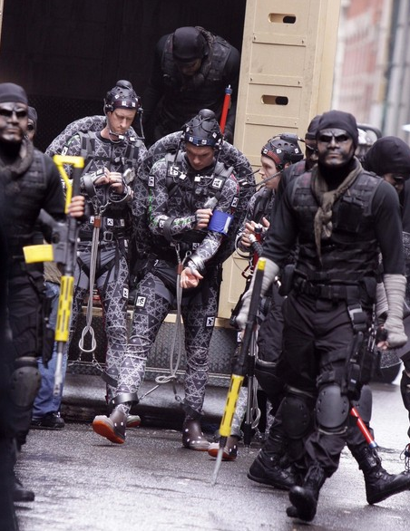 Above you'll also see several of the guys dressed up in their full motion-capture suits ready to knock out some scenes. These images were shared by Access Hollywood and Comic Book Movie all the way back in May of 2013. They've clearly gotten a lot closer to production here in the present. Also note the appearance of what very well could be some terrifying-looking FOOT Soldiers.