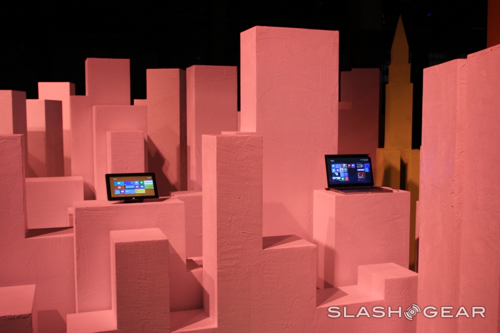 You'll see many of the devices on tables here that were given final details over the past few weeks. These devices come from Acer, ASUS, HP, Dell, Toshiba, Samsung, Sony, and Lenovo, and can be found in run-downs galore throughout our Windows 8 portal. Microsoft is making an effort also to differentiate between the coverage and attention they give to their 3rd party partners and their own Surface tablets, giving them both their own space and a completely separate presentation at the main Windows 8 release event for the press.