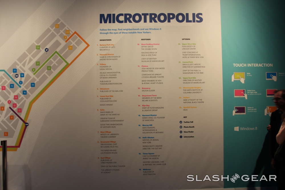 Also included in the Microsoft bid for attention in New York City is an art-like presentation on Pier 57, it being a city of Windows 8 products in a color-splashed white city, each of them able to be viewed and in some cases available for hands-on action as well. This public display is advertised throughout the city and on the web for the public to head over and see for several weeks.