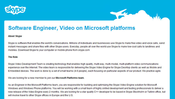 We can expect the video calling service to eventually get integrated into the Xbox and just about anything else that Microsoft can come up with. The photo up above is the actual Skype Careers job posting that is online.