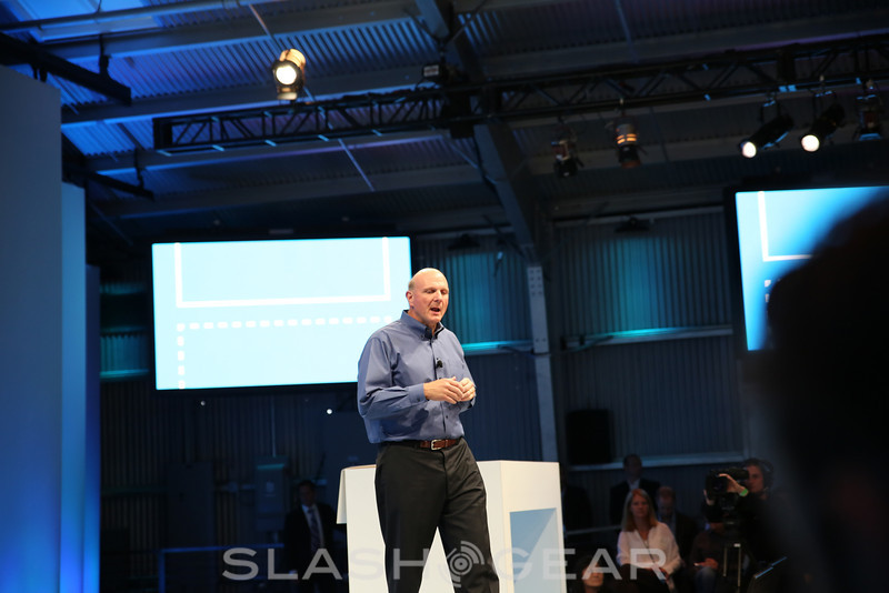 Ballmer souped up the software and let us know that Windows 8 was about to keep with Microsoft's core values while expanding their horizons. In starting with talk like "It was always clear that what our software could do would require us to push hardware, sometimes where our partners hadn't envisioned," Ballmer perhaps attempted to surprise the audience with the following: