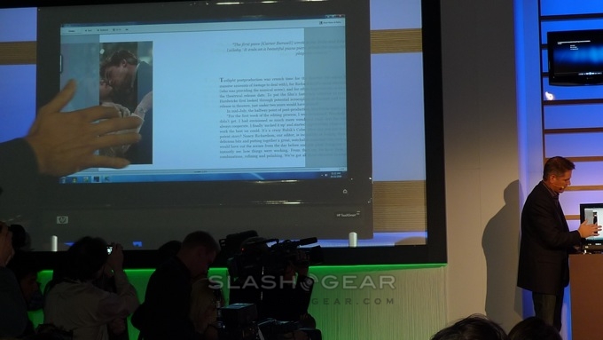 The CBS partnership will integrate a new webfeed for CBS content into the Windows 7 Media Center, delivering streaming media (including adverts) even without a cable or DTV connection. Meanwhile, like the Xbox 360, Windows 7 will also have access to Netflix. Amazon have created a touch-aware Kindle app for Windows 7, with control of ebooks by finger-swipes; you can see demo images in the gallery below.