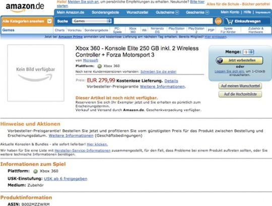 Microsoft Xbox 360 Makes Appearance On Amazon Germany