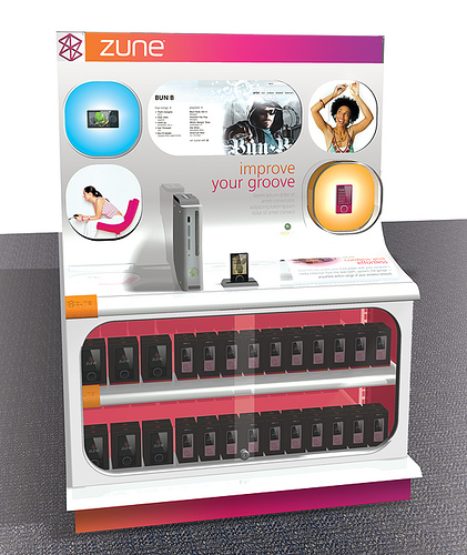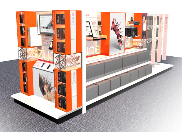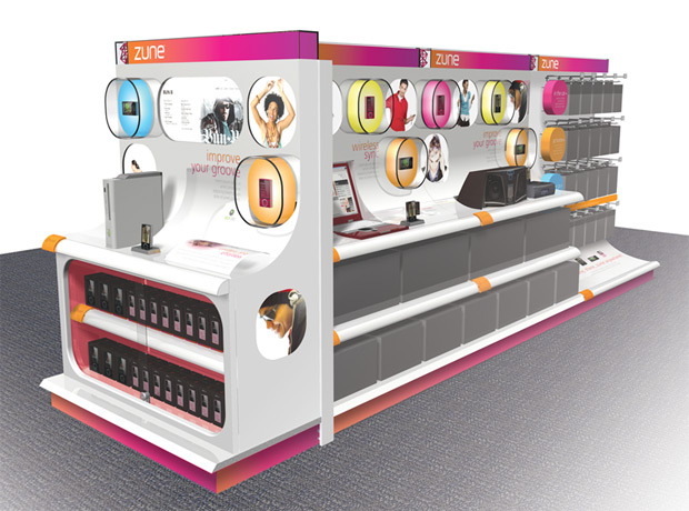 Microsoft's retail location plans are now public, but it's much more likely you'll come across something like this new Zune retail display at your local electronics emporium. Designed by Oregon-based Planned Marketing Solutions International (PMSI), the new renders show a far more eye-catching (and less brown) evolution of the current, relatively dreary Zune displays.More renders after the cut