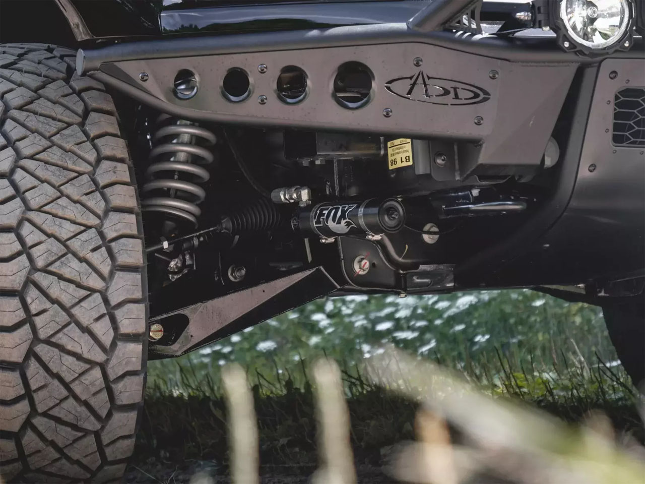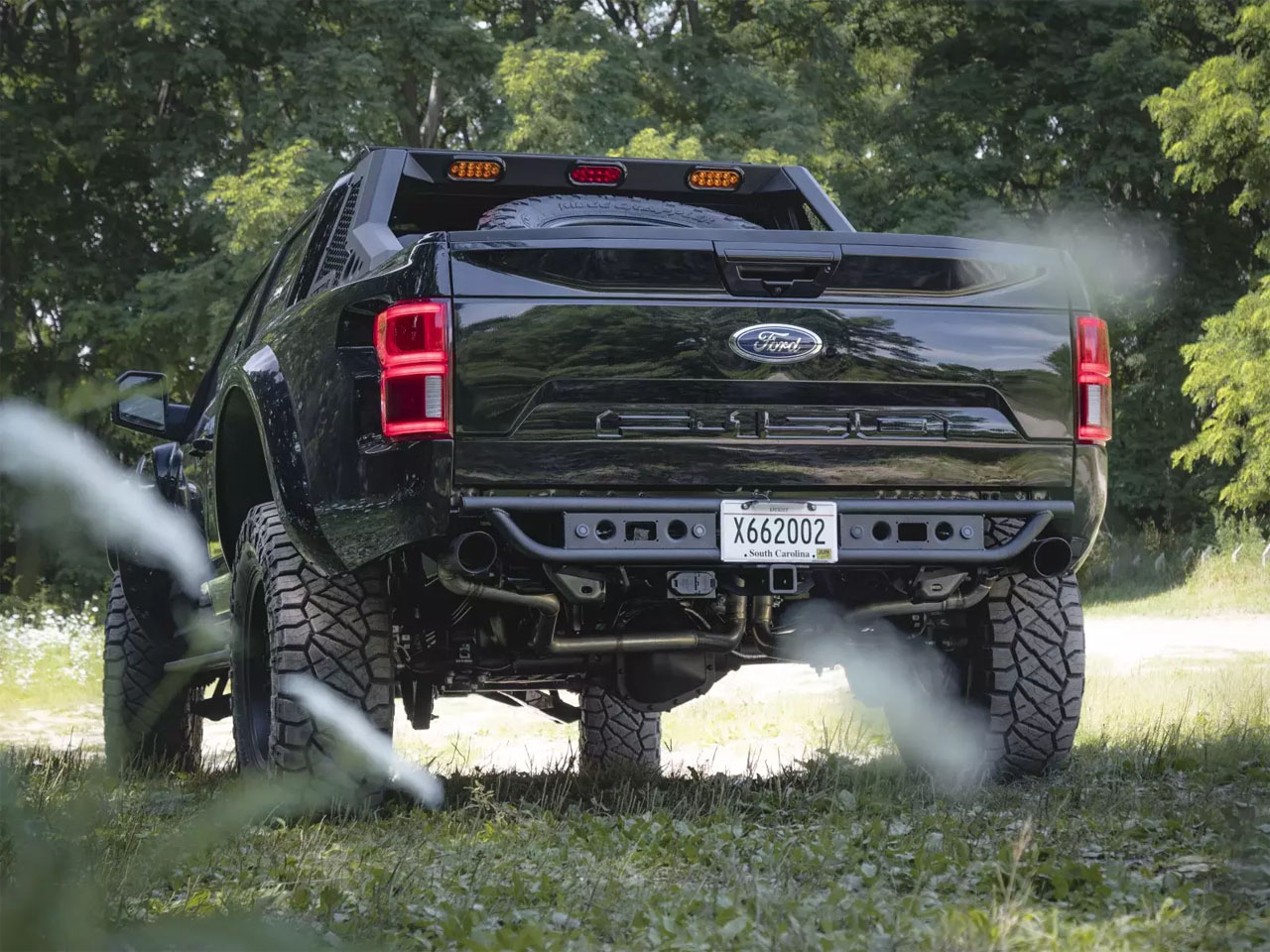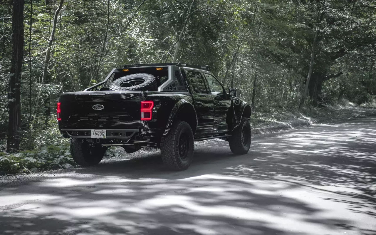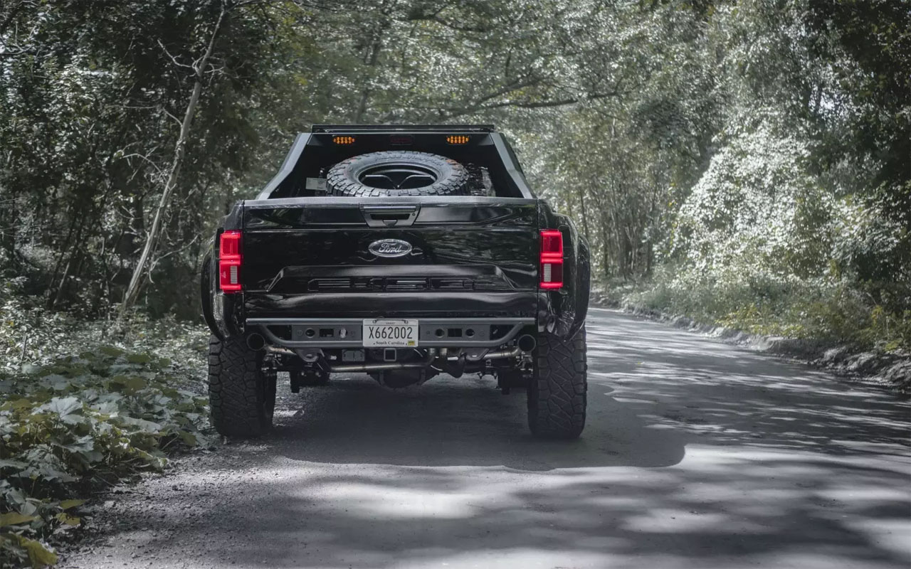 To make that much power and torque requires 93-octane premium. The fuel system was modified with upgraded fuel rails, 47 pound-per-hour fuel injectors, and a new air-to-liquid intercooler. The heavily modified suspension does maintain the factory Ford tow rating. This vehicle does roll on the Baja Suspension kit featuring Fox Racing shocks and new control arms and half shafts. Exact pricing is a mystery, but the truck is expected to cost well to the six-figure range.