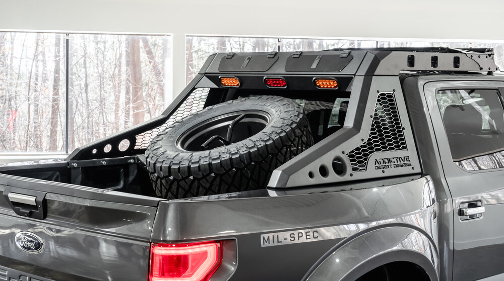 Other than engine and suspension modifications, the truck also gets styling upgrades to include a Baja Exterior Appearance Package. That package has a roof rack with an LED light bar and a spare tire carrier in the bed of the truck. Both the front and rear bumpers are upgraded, but there appears to be no provision for a winch.