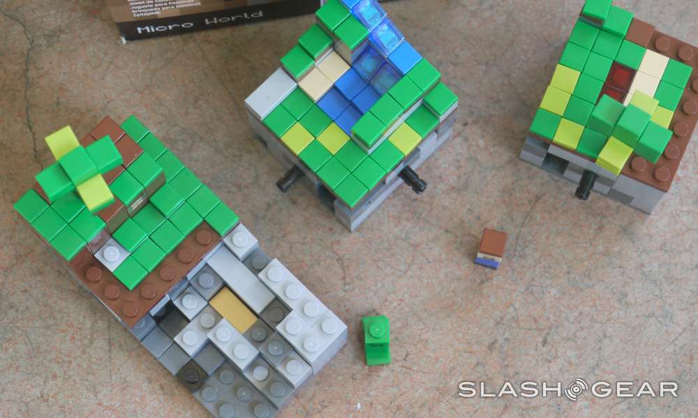 This set comes with 480 peices and will allow you to work in a couple shades of gray, brown, tan, red, blue, green, and transparent. Because there are at least a handful of colors that do not exist in this set, we must assume more Minecraft is on the way in the near or distant future. There are several pieces in this set with cross-shaped holes that are connected to one another with four poles. This allows you to create a set that you can separate into four bits, put together, and easily access again with a simple tug.