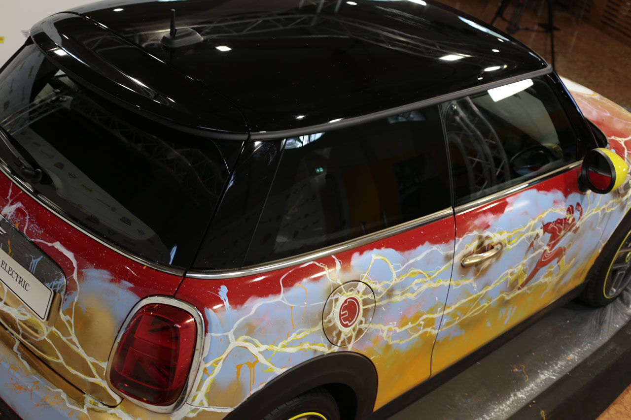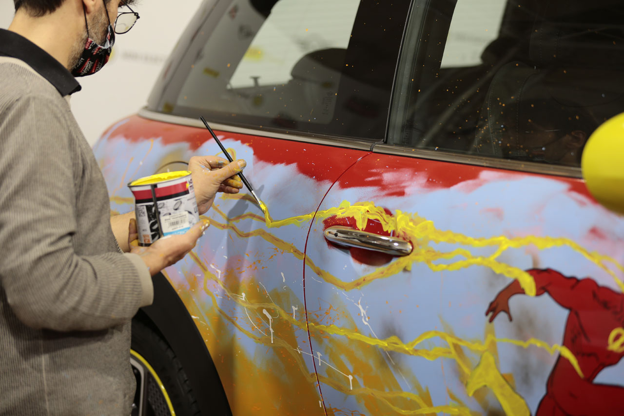 Fans of DC comics will recognize the name The Flash. He's a superhero celebrating his 80th birthday. To celebrate the birthday of the iconic superhero, a MINI Electric was used as the canvas by an Italian cartoonist named Carmine Di Giandomenico for the Lucca Changes 2020 international comics fair that took place in Tuscany. Giandomenico painted directly on the body of the bright red Mini Electric for the special car.