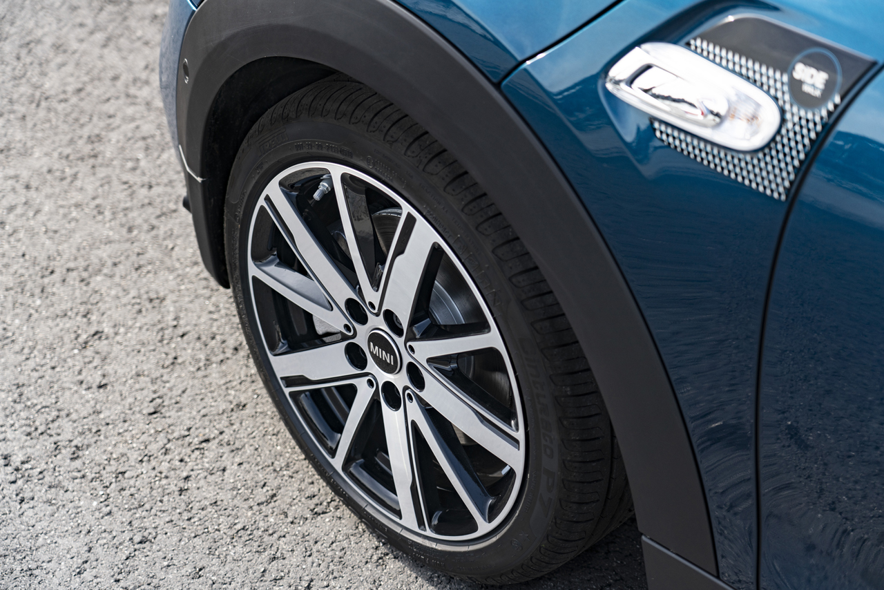 Mini says that the convertible top can be opened or closed in 18 seconds in near silence. The wheels are 17-inch light-alloy units in a Scissor Spoke 2-tone design. Mini also fits the car with side indicator bezels, called side scuttles, that have the Sidewalk model designation.